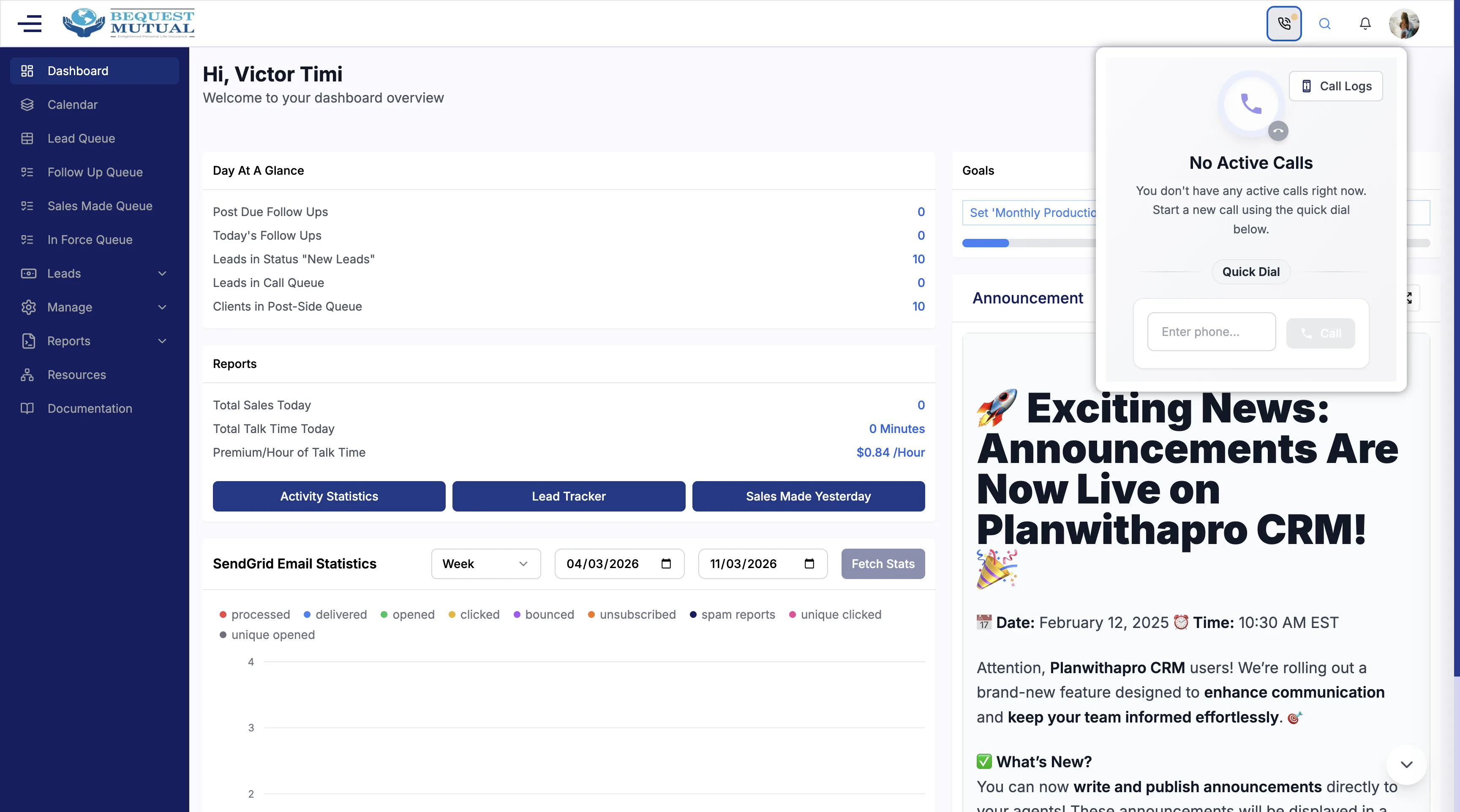 Plan With a Pro CRM is a life insurance CRM for sales and insurance teams. It helps them manage leads, run campaigns, handle calls and SMS (via Twilio), schedule appointments, use queues, and view reports—all in one place so agents can work leads and close life insurance business more efficiently.